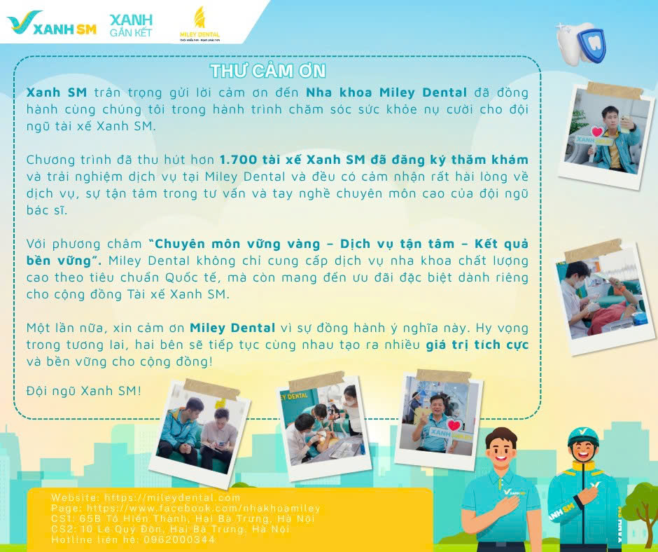 📍 Đơn vị đồng hành: Nha khoa Miley & Xanh SM